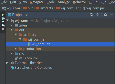 자~ 확인해봅시다. 프로젝트 탐색창에서 out -> artifacts ->.....로 찾아 들어가면 드디어 .jar파일이 존재하는 것을 볼 수 있습니다. 이 경로를 탐색기로 찾아가 보겠습니다.