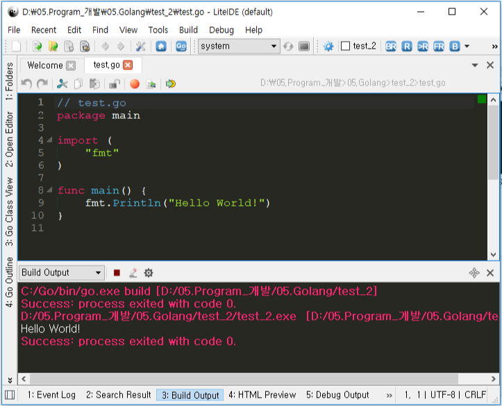 간단히 Go 언어 설치부터 LiteIDE 설치 및 Hello world! 까지 단숨에 알아보았습니다.