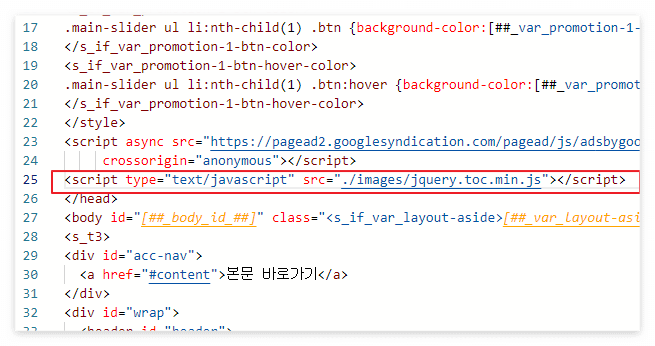 다운받으면 images/jquery.toc.js, images/jquery.toc.min.js의 두개의 파일을 업로드해줍니다.