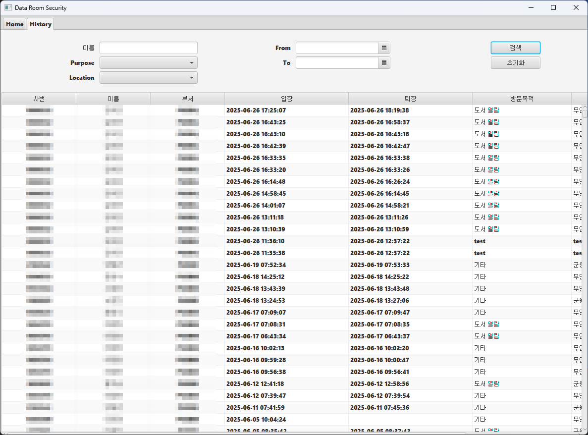 이번 프로젝트는 출입 통제하는 프로그램이다. 자료실에 드나드는 사람에게 ID 태그를 읽혀서 들어올땐 "안녕하세요", 나갈땐 "안녕히가세요"를 출력해주고, 다른 탭에서 전체 출입인원 목록을 확인하면 된다.