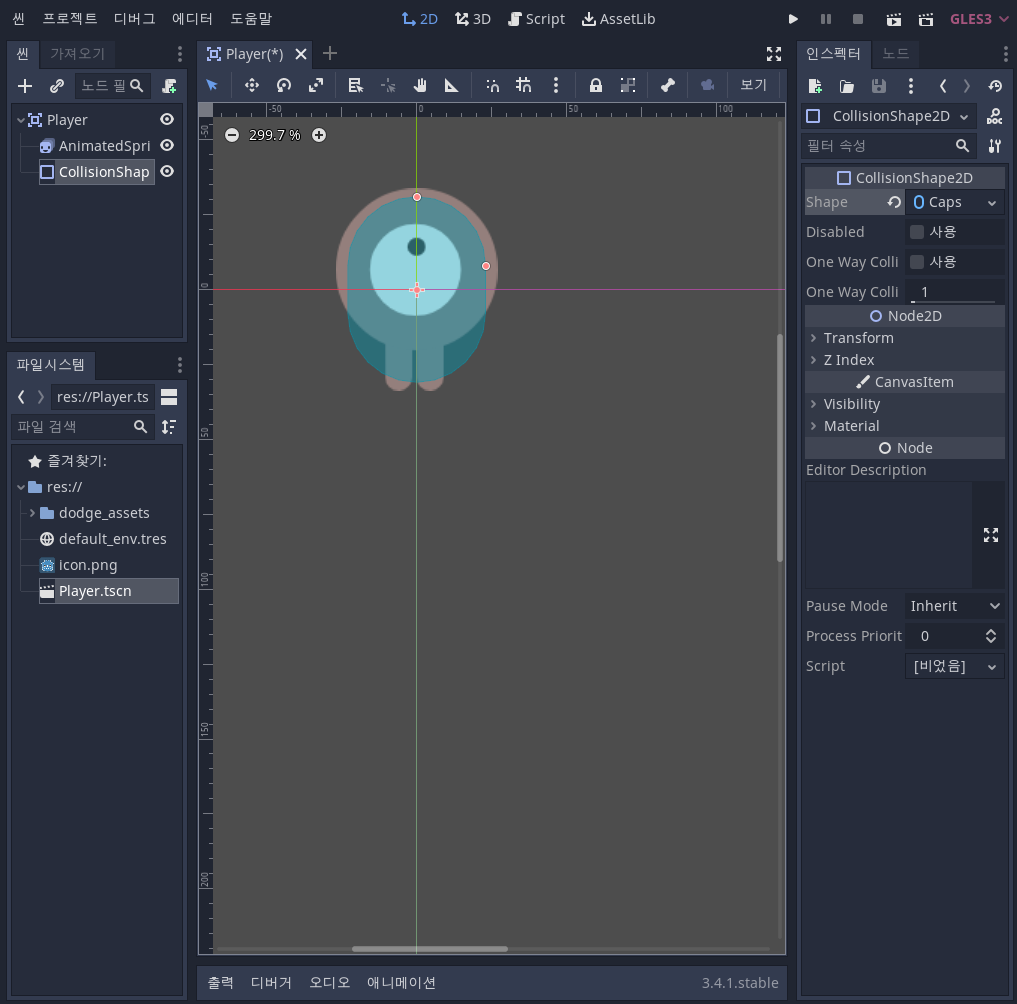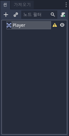 노드를 더블클릭하여 이름을 Player로 바꿔줍니다. 그리고 Player.tscn으로 저장합니다.