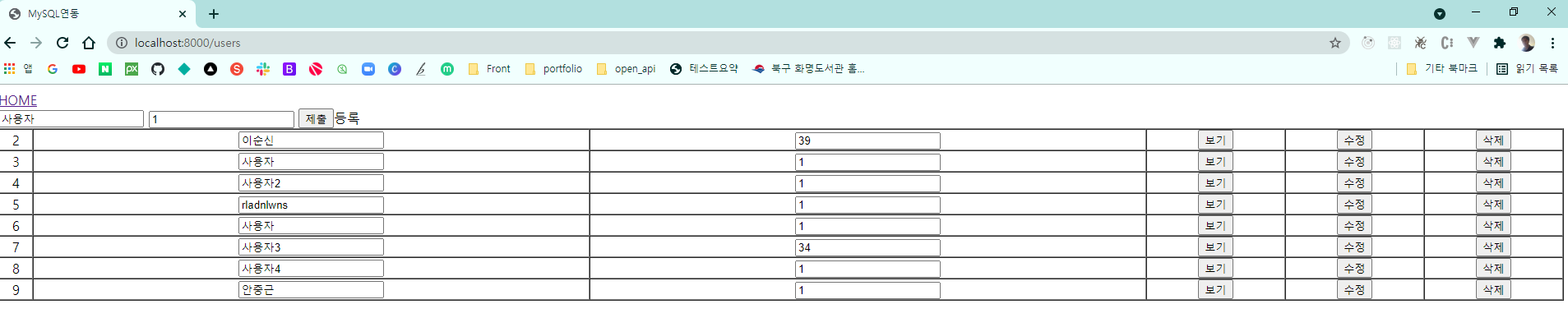 이상, FastAPI를 사용하여, 간단하게 Database와 연계, CRUD 실행, Frontend까지 작성해보았습니다.