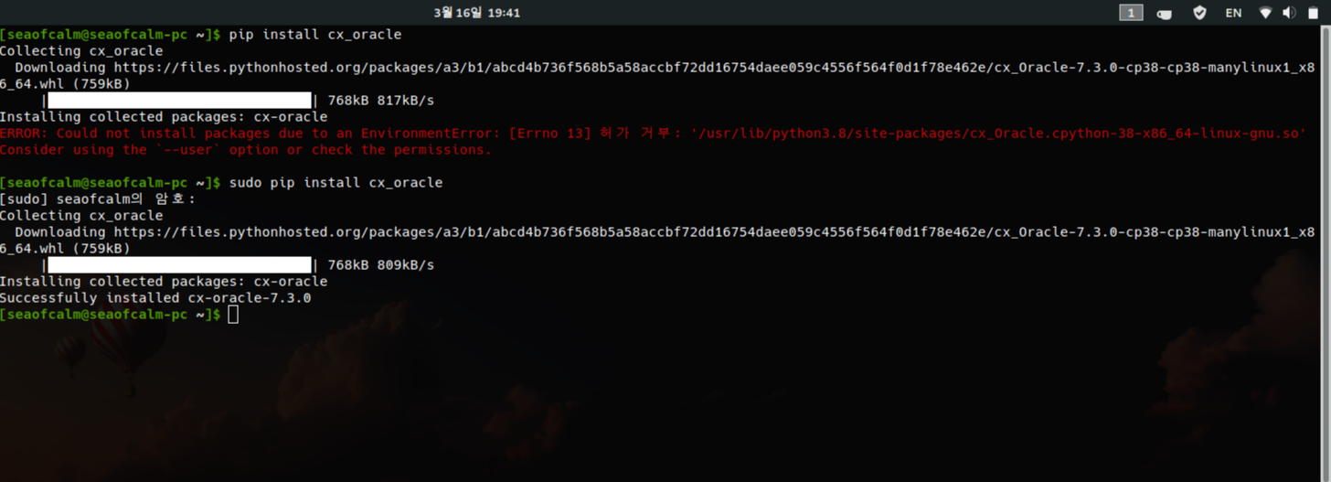 Python로 Oracle Database에 연결하기 위해서는 cx_oracle 모듈을 설치해야 합니다.