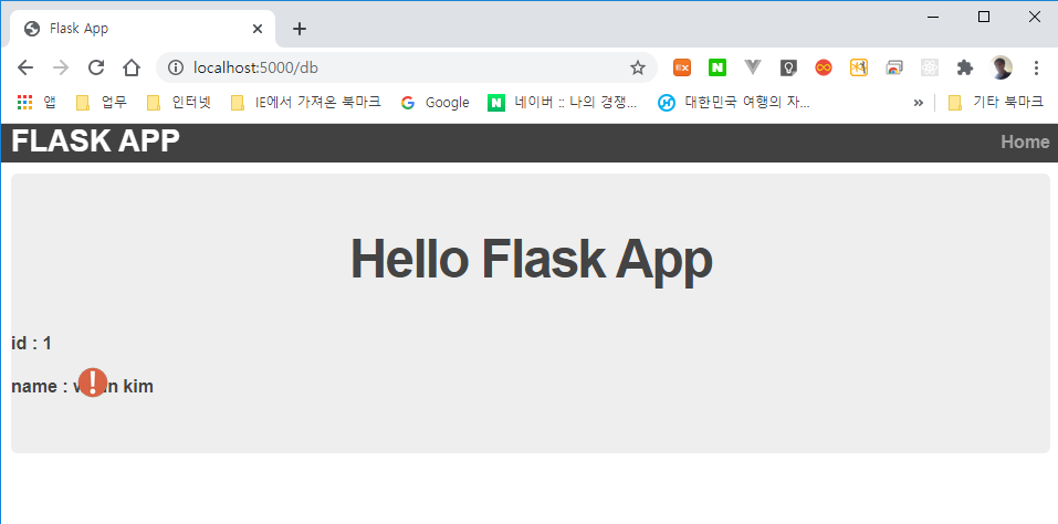 그리고 localhost:5000/db로 url을 입력해 봅시다.