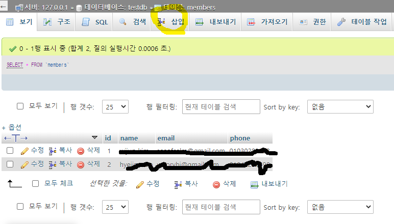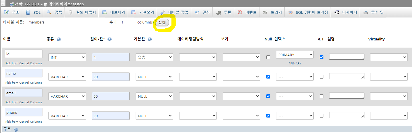 이렇게 기본적인 테스트 테이블 및 데이터를 생성하였습니다.